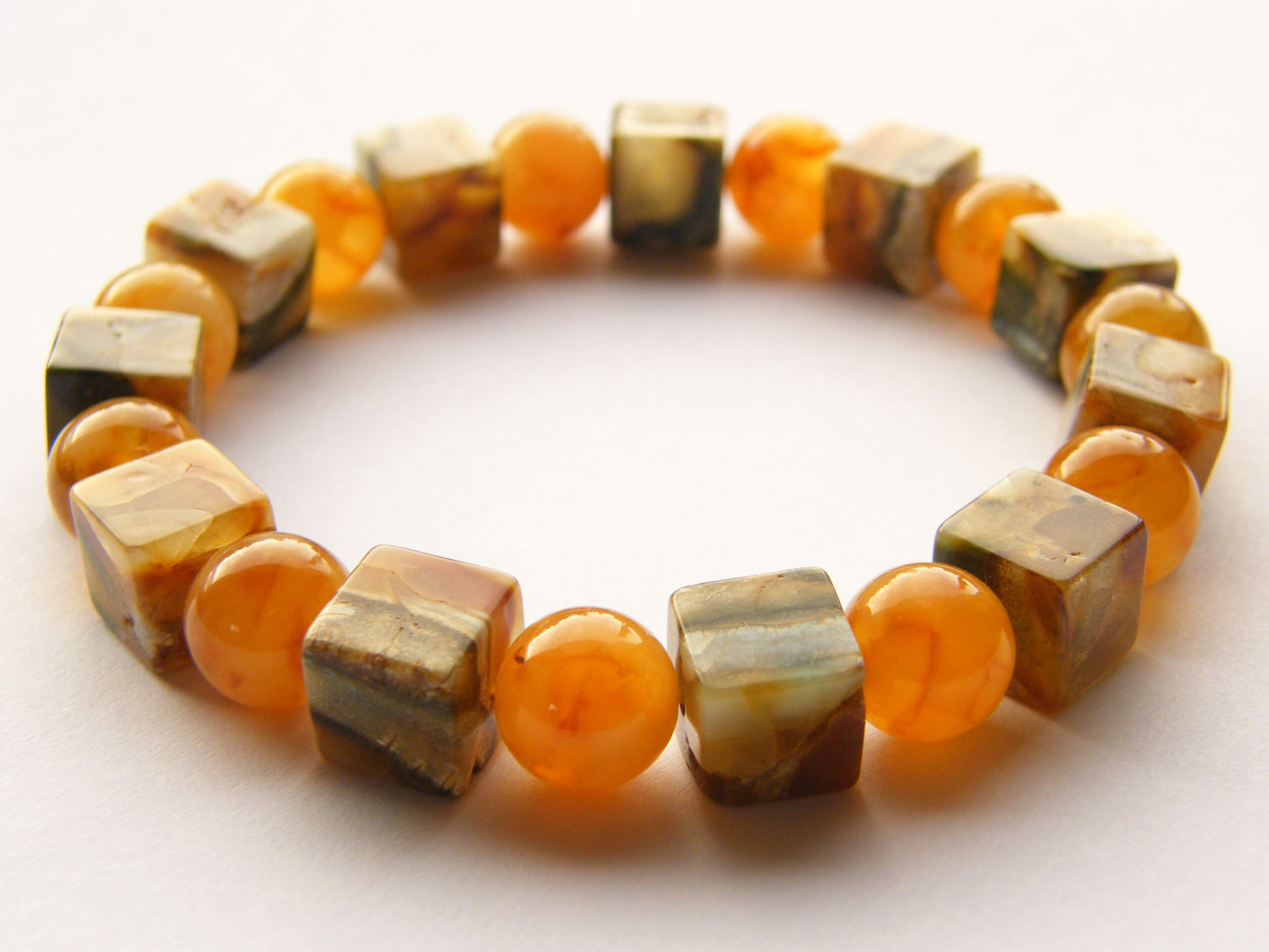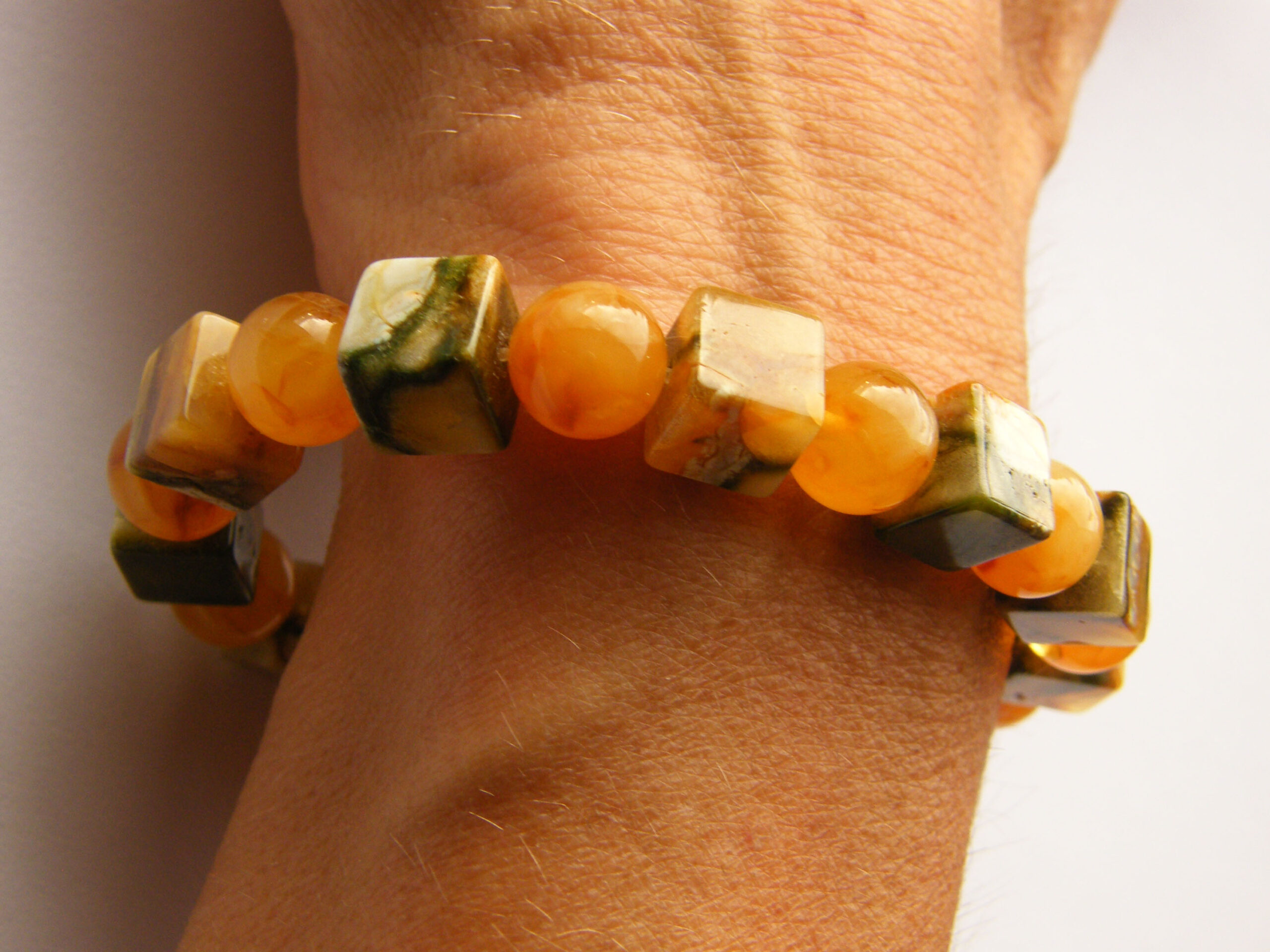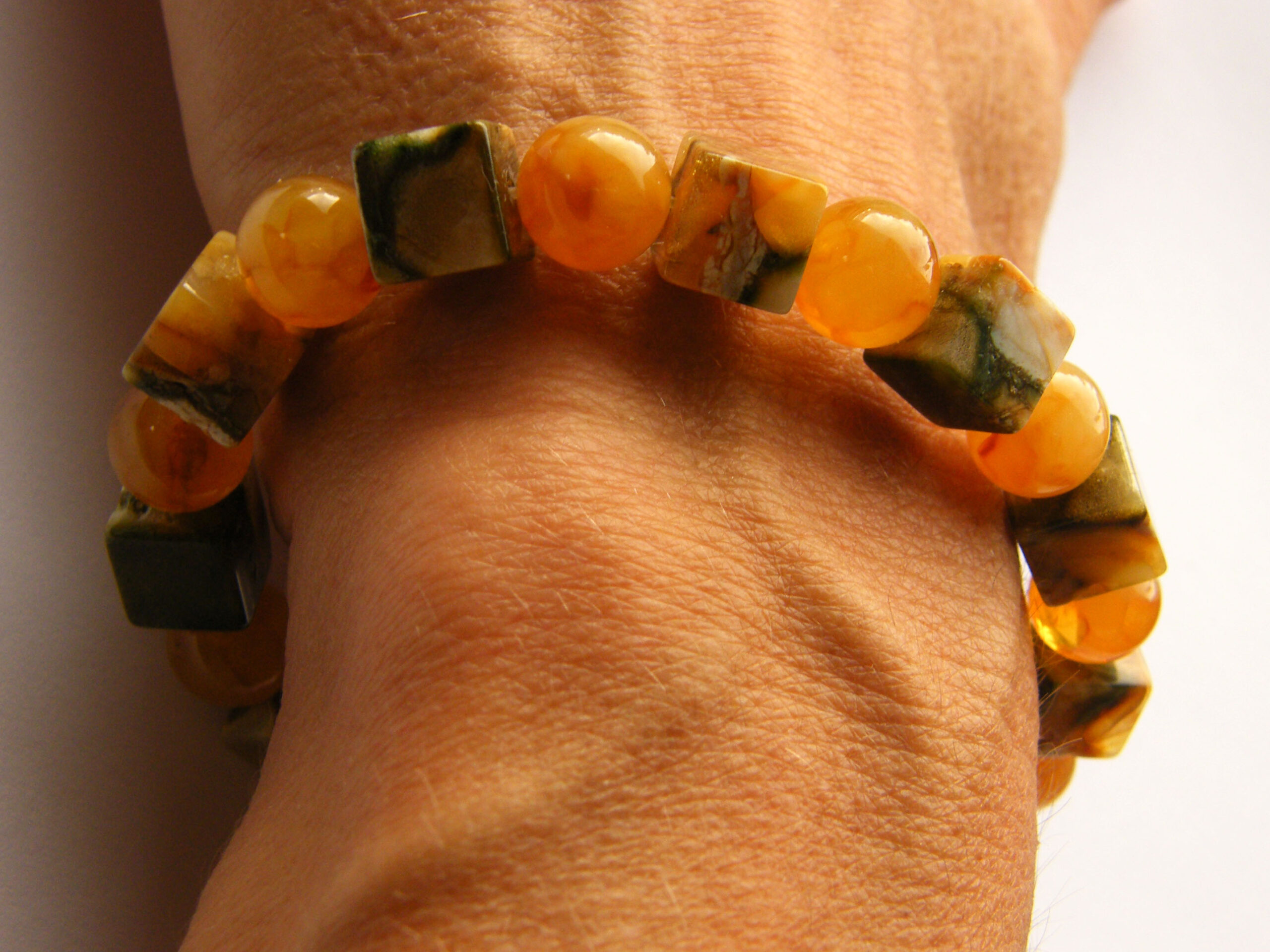 BRANSOLETA bursztynowe kostki i kulki mleczne