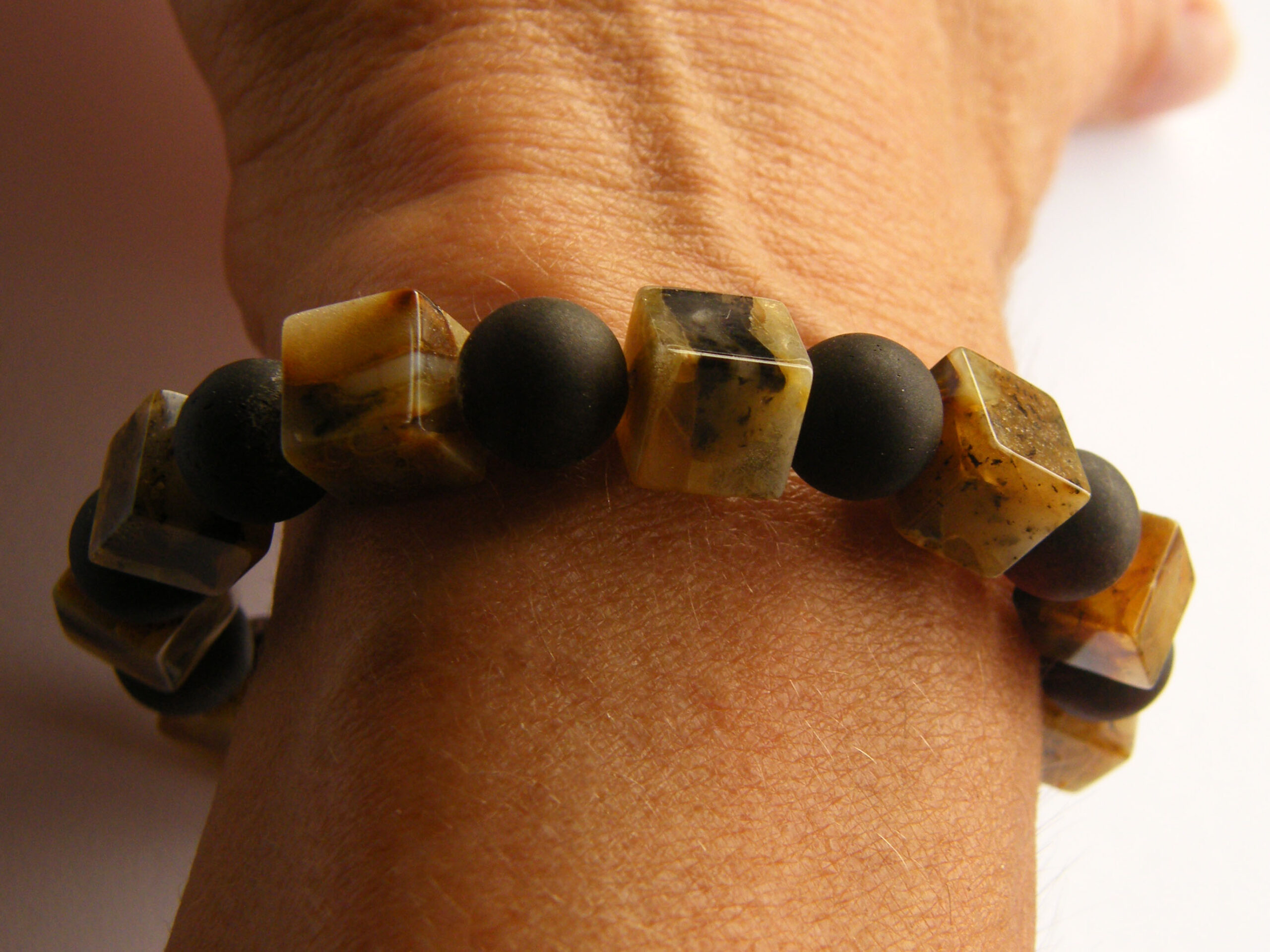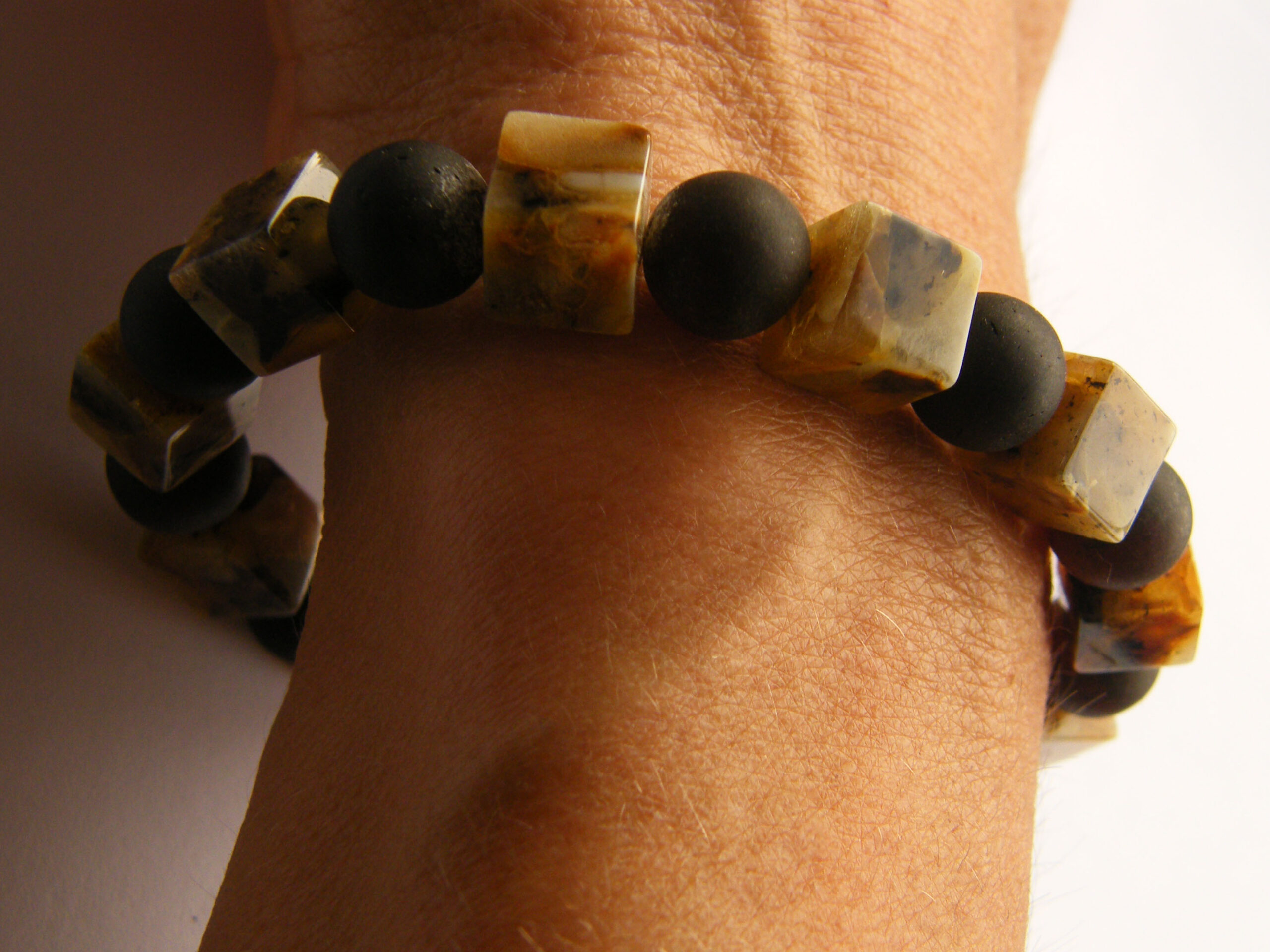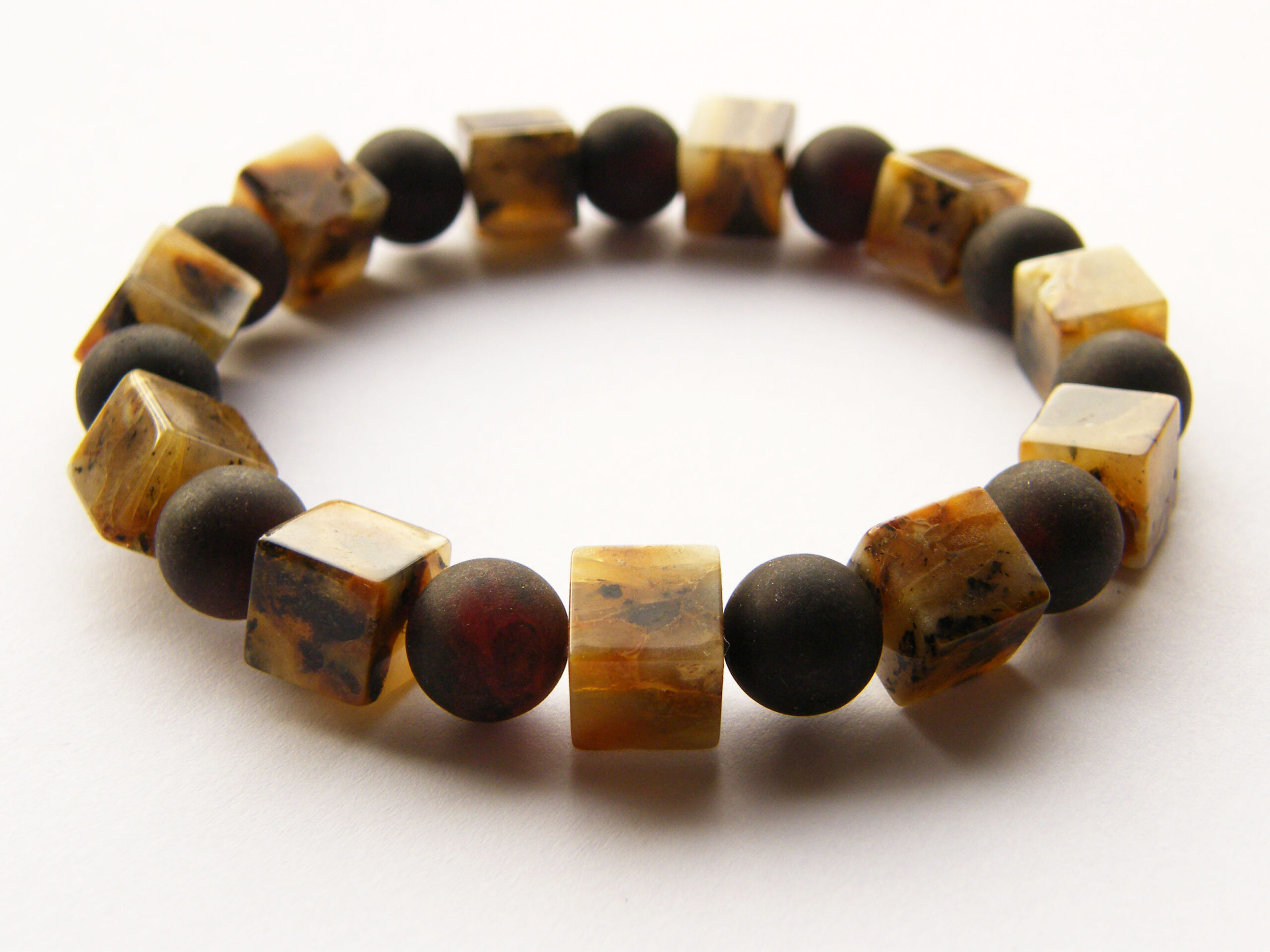BRANSOLETA UNISEX bursztynowe kostki i kulki