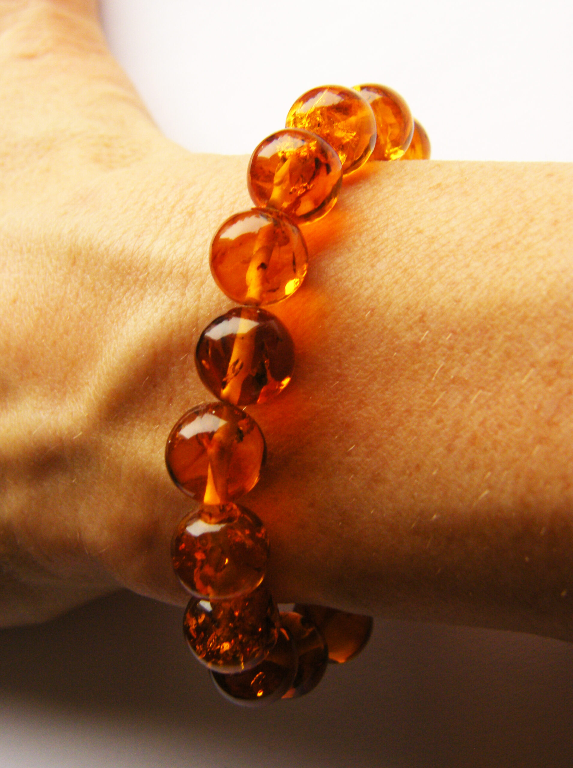 Bransoleta wykonana z miodowo-czerwonych bursztynowych kulek