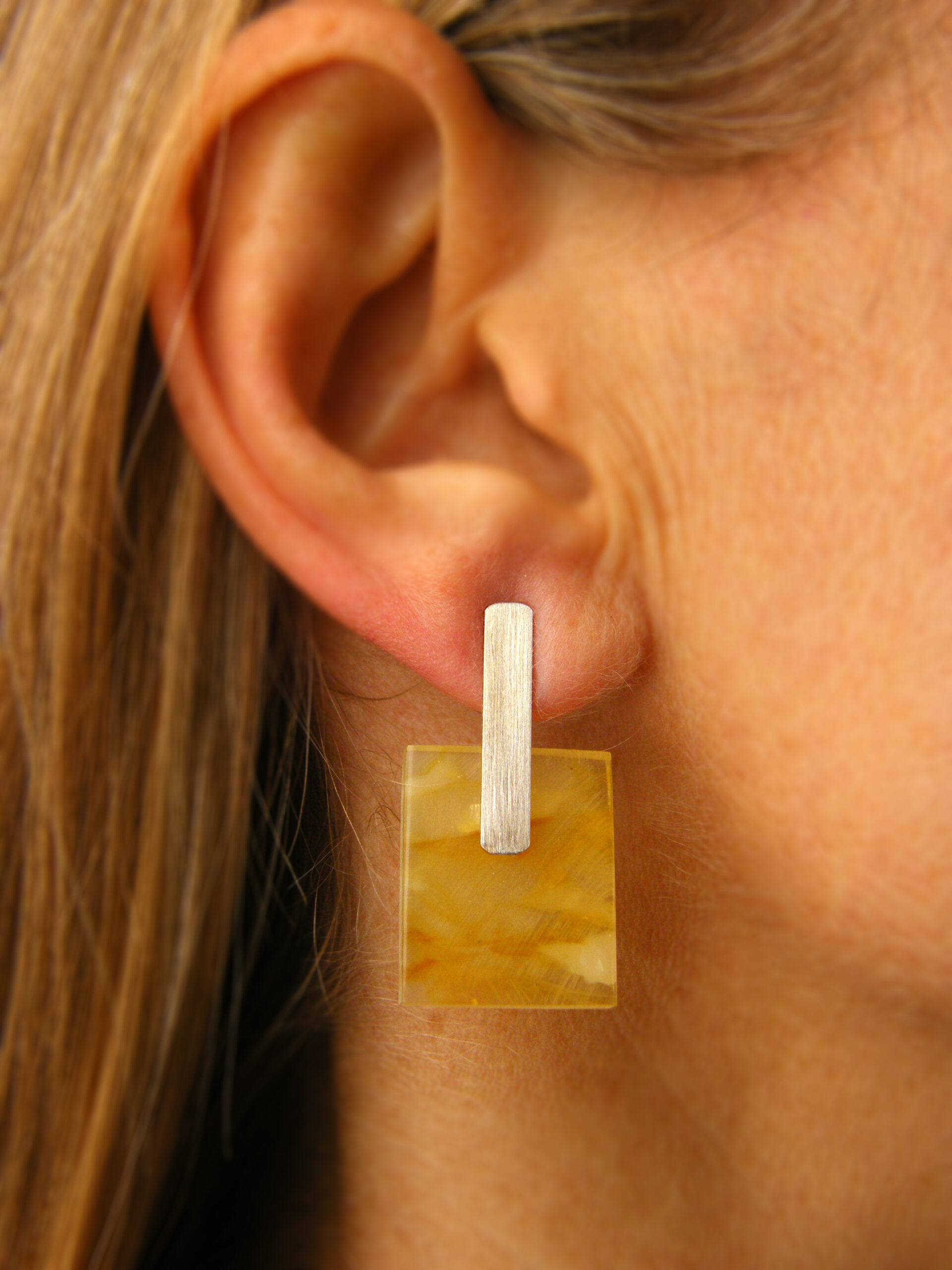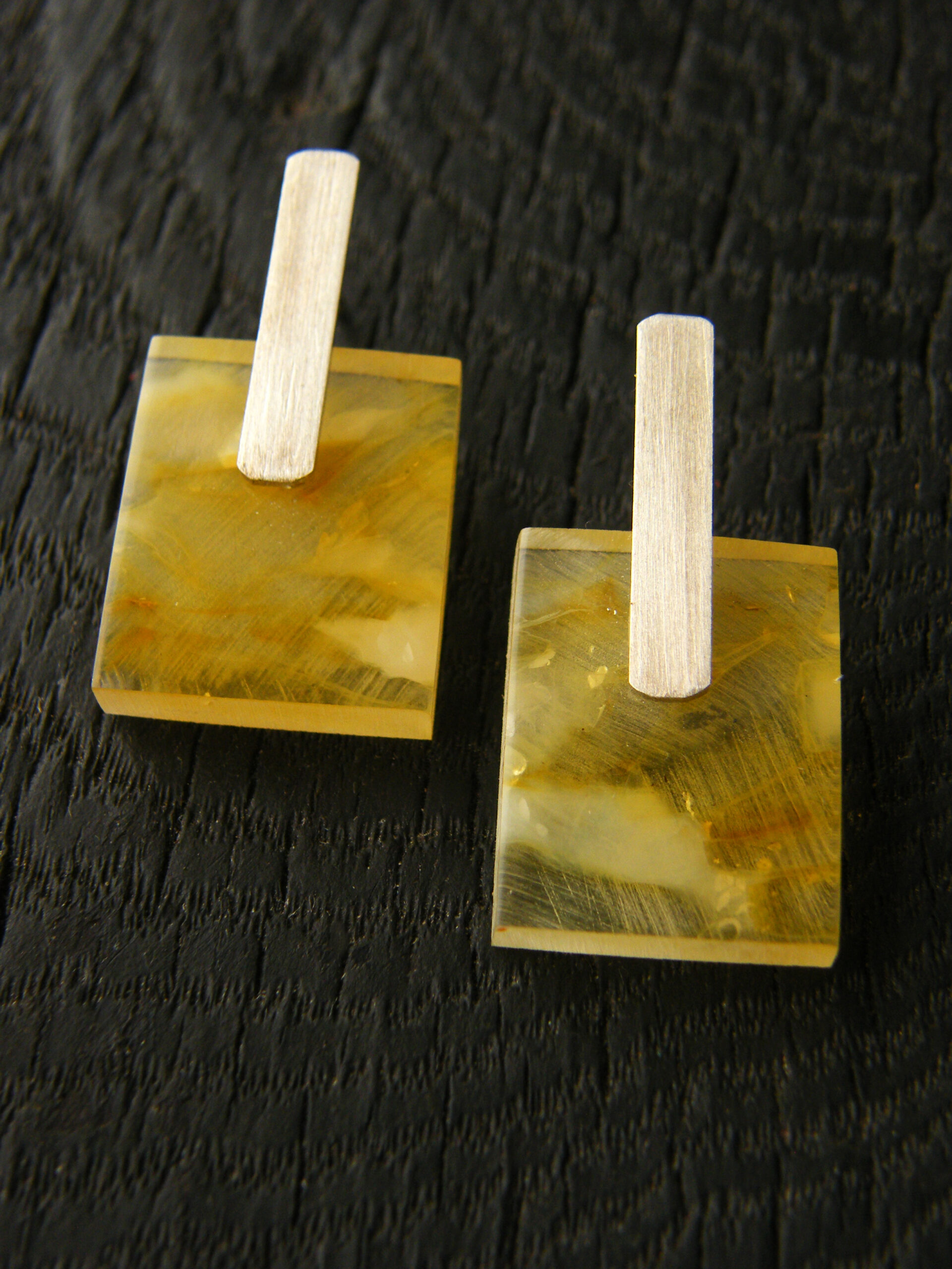 Kolczyki wykonane ręcznie z żółtego bursztynu bałtyckiego i srebra (pr.925).
