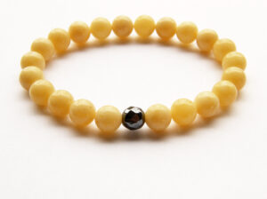 Bransoleta mleczne kulki BURSZTYN + hematyt