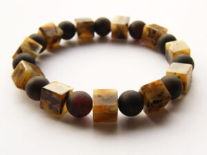 Bransoleta surowe BURSZTYNY szare + hematyt