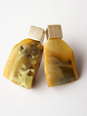 Kolczyki BURSZTYN matowy jasne srebro KOSTKA